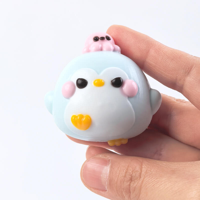 ❄️🐧Introducing the Cute Penguin With Octopus Bam Squishy, where friendship meets fidgeting! This handmade food-grade silicone toy features an adorable chubby penguin in soft blue-grey with a cheerful yellow beak, topped by an adorable tiny pink octopus—like a living hat!